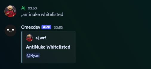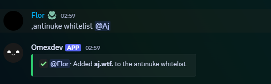 Whitelisted users do not trigger antinuke punishments.