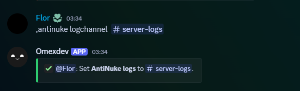 .antinuke on - Set a log channel: